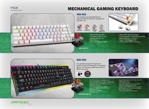 • Switch: Brown buttons, independent led • Keyboard Dimensions: 448.5*143.13*22.67 mm
